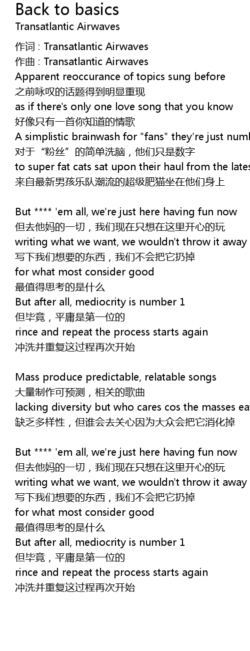 | 作词 : Transatlantic Airwaves | |