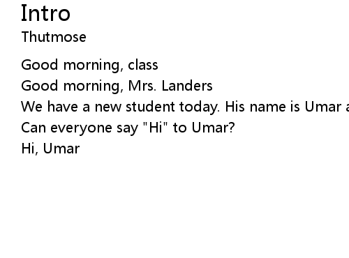 We have a new student today. His name is Umar and he's from Nigeria. Can everyone say "Hi" to Umar?