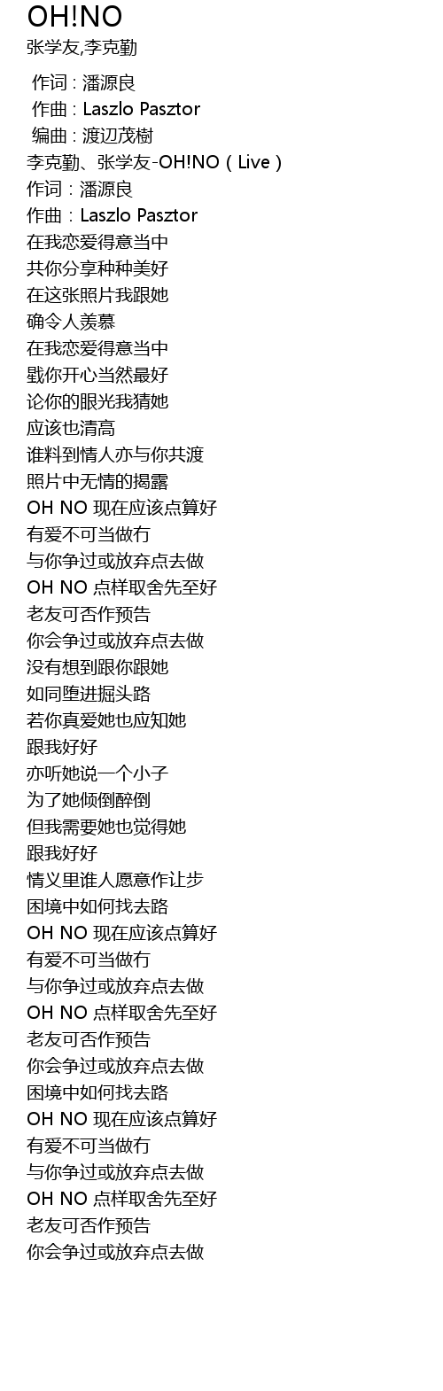 | [00:00.743] | 李克勤、张学友-OH!NO(Live) |