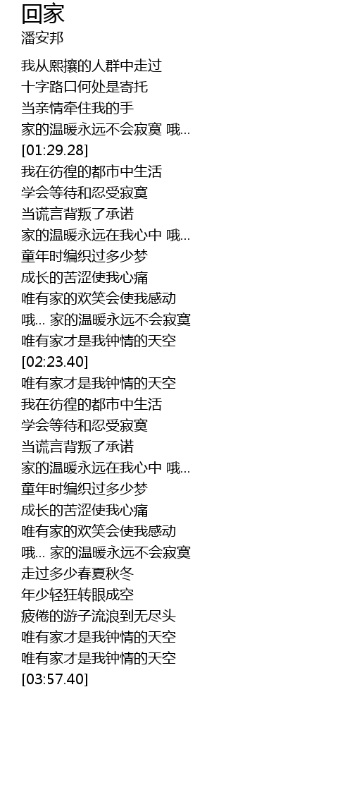 | [02:01.04] | 唯有家的欢笑会使我感动 |