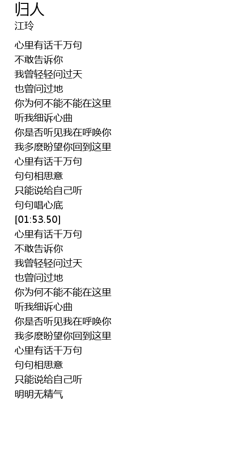 | [01:16.26] | xīn lǐ yǒu huà qiān wàn jù |