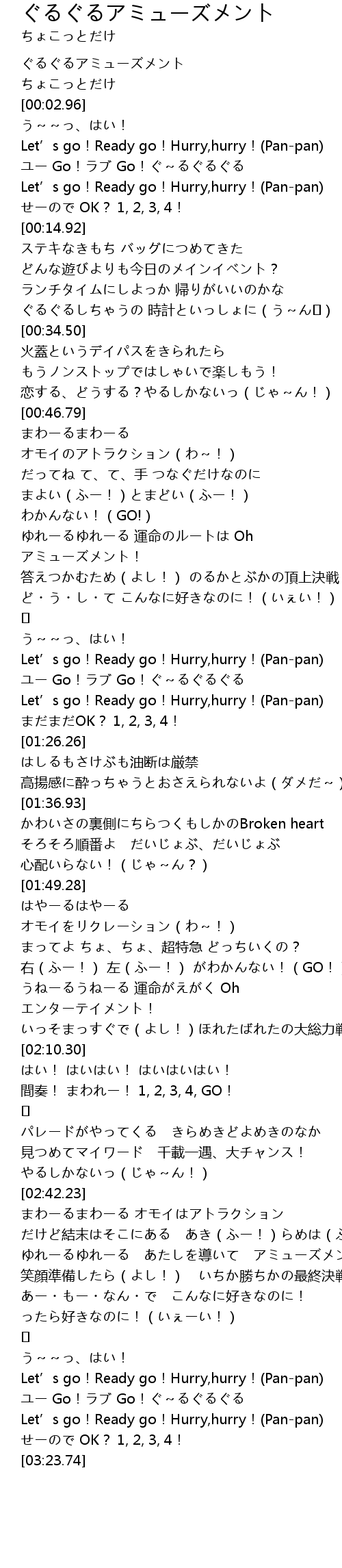 | [03:16.40] | ユー Go!ラブ Go!ぐ~るぐるぐる |
