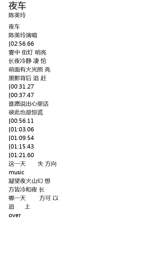 | [02:04.56][00:31.27] | 夜车飞奔哪方 |