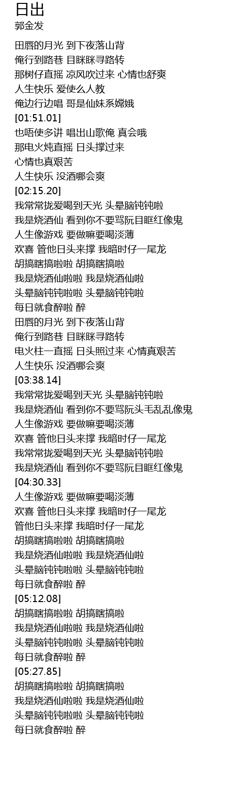 | [04:14.32] | 我常常拢爱喝到天光 头晕脑钝钝啦 |