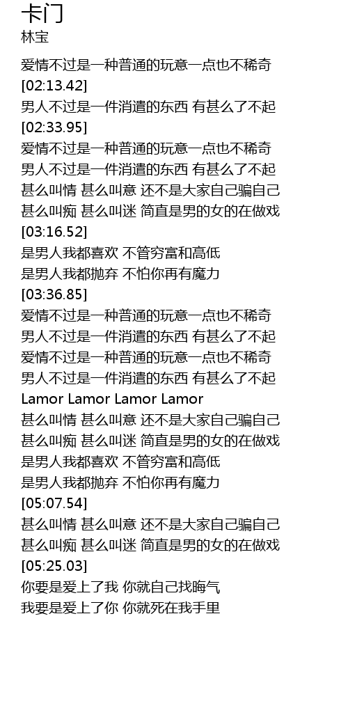 | [04:17.99] | Lamor Lamor Lamor Lamor |