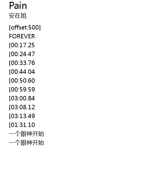 | [03:48.35][01:31.10] | 一个眼神开始 直到永远 |