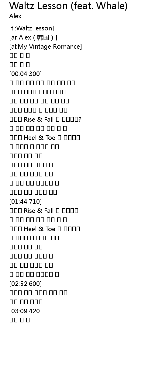 | [02:10.100] | 앞으로 Heel & Toe 참 잘했어요 |