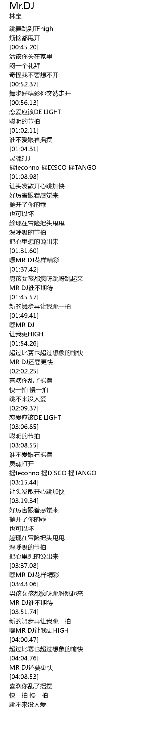 | [04:05.26] | MR DJ还要更快 |