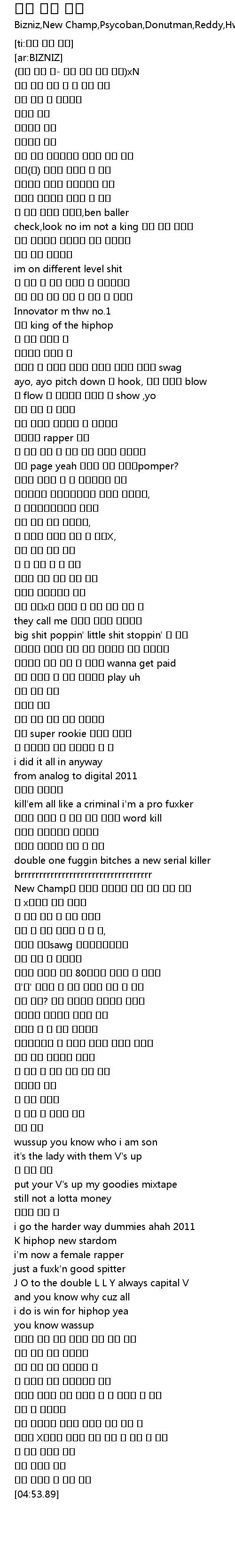 | [01:41.94] | they call me 트윗킹 힙합킹 빚님강림 |