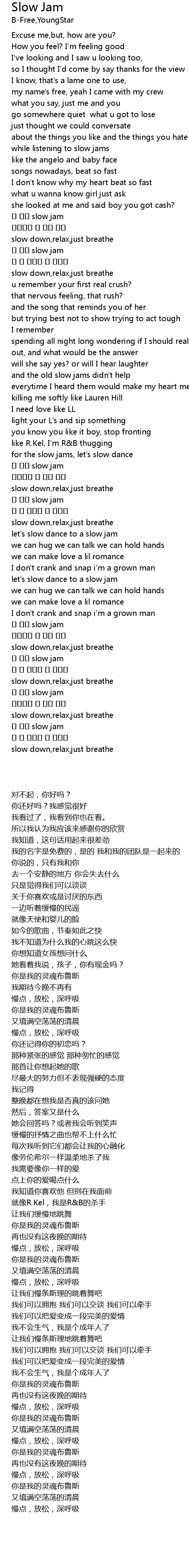 | [03:18.222] | 慢点,放松,深呼吸 |