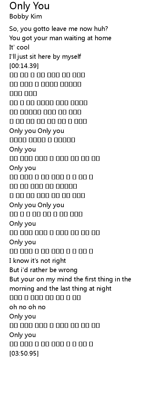 | [01:38.91] | 나를 안아줘 너 없이 하루도 살 수 없는 날 |