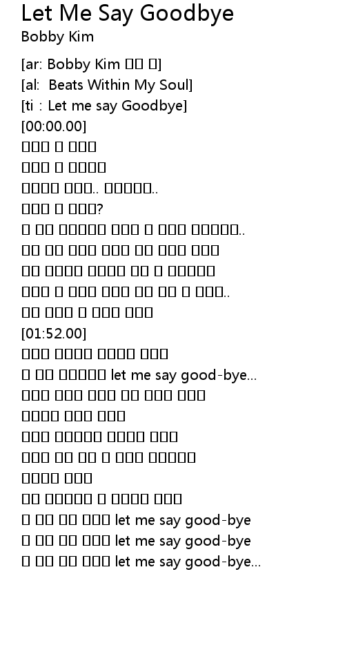 | [02:06.00] | 또 내일 만날것처럼 let me say good-bye... |