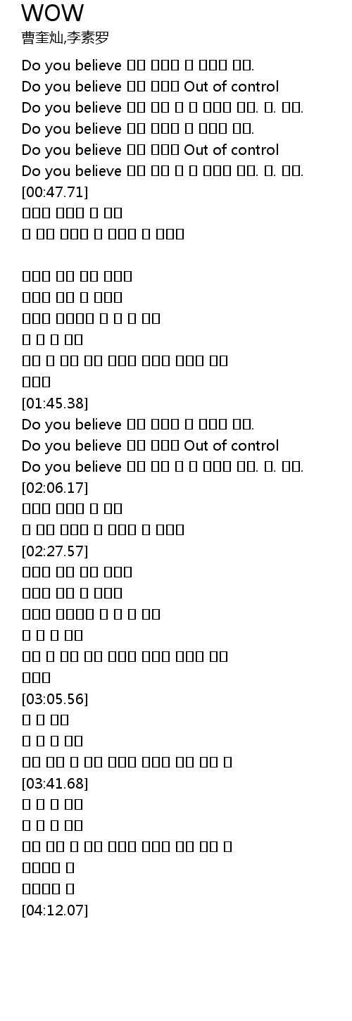 | [00:32.22] | Do you believe 네가 없으면 Out of control |