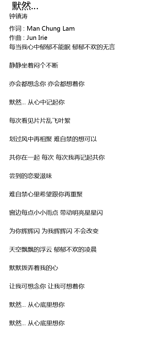 | 每当我心中郁郁不能眠 郁郁不欢的无言 | |