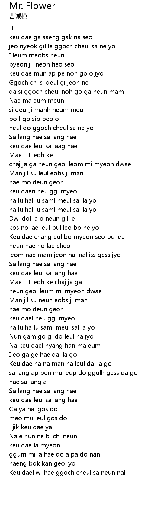 | [04:18.431] | Keu dael wi hae ggoch cheul sa neun nal |