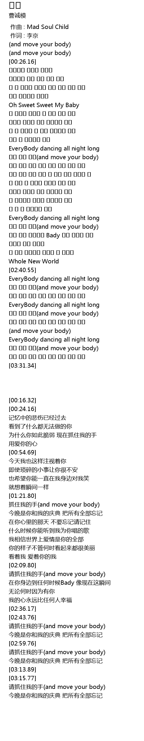 | [03:19.70] | 请抓住我的手(and move your body) |