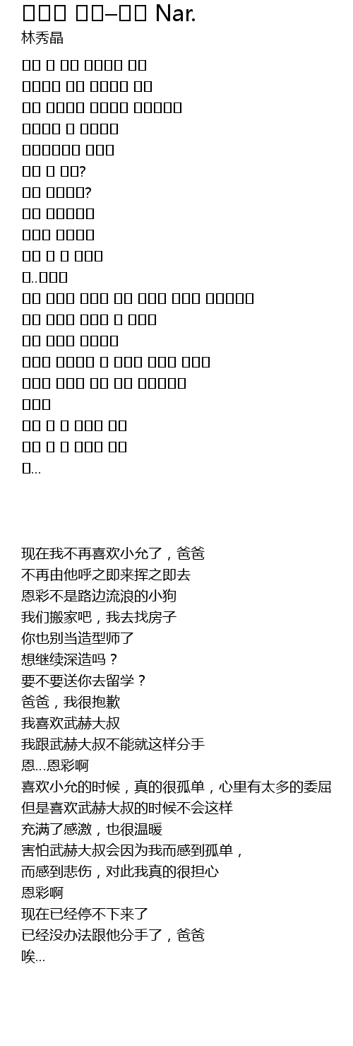 | [00:02.97] | 现在我不再喜欢小允了,爸爸 |