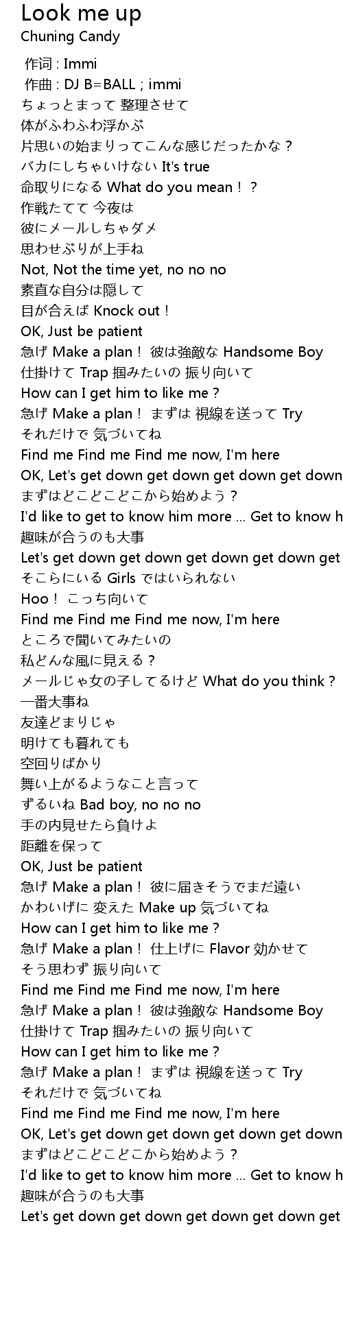 | [01:12.000] | Find me Find me Find me now, I' m here |