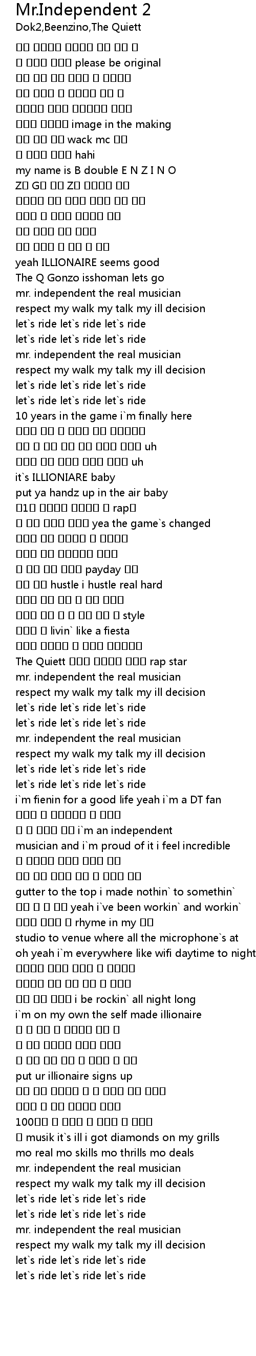 | [02:31.70] | 잘 안 나오는 랩퍼 i`m an independent |