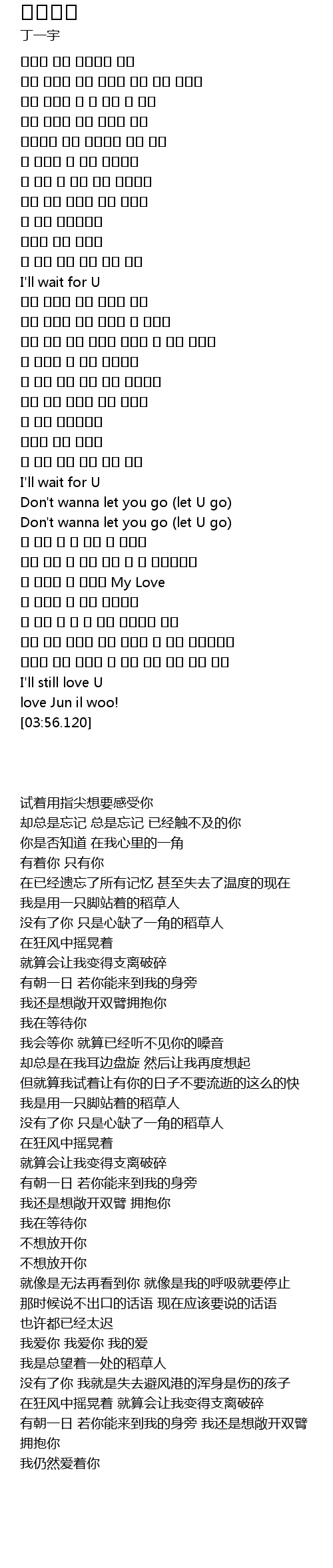 | [00:57.800] | 没有了你 只是心缺了一角的稻草人 |