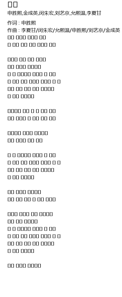 | 作曲 : 李夏甘/闵朱宏/允熙温/申胜熙/刘艺京/金成英 | |