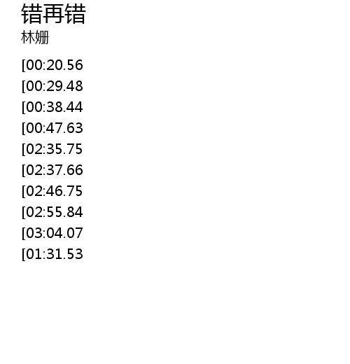 | [02:01.10][00:20.56] | 错一次 惊甲真久不敢爱 |