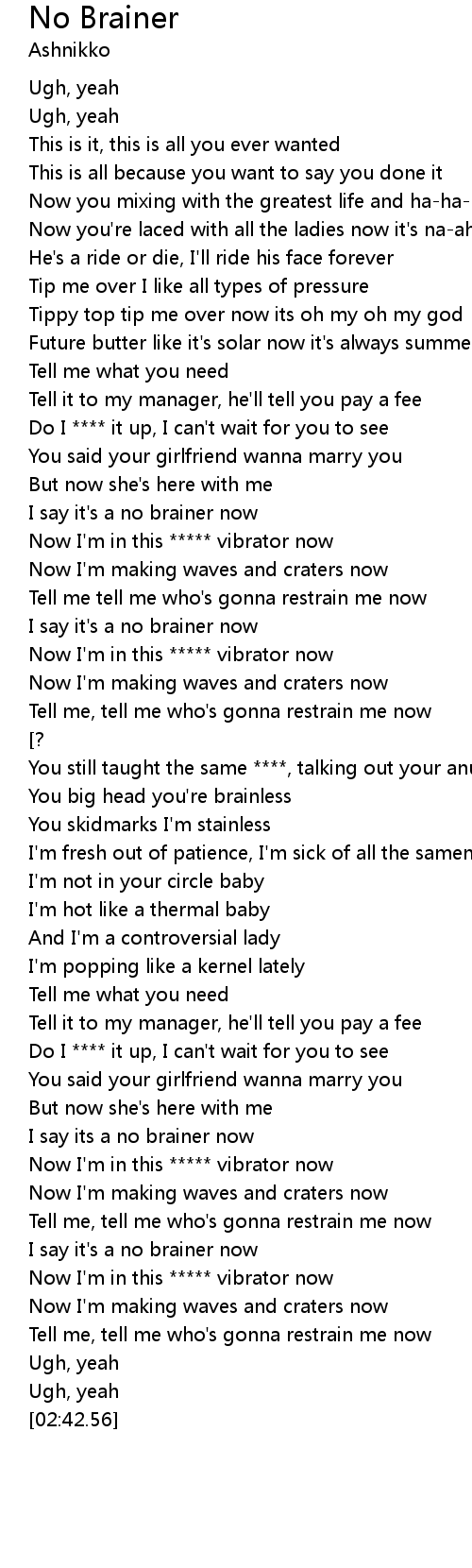 Now you're laced with all the ladies now it's na-ah-ah-ah-not |