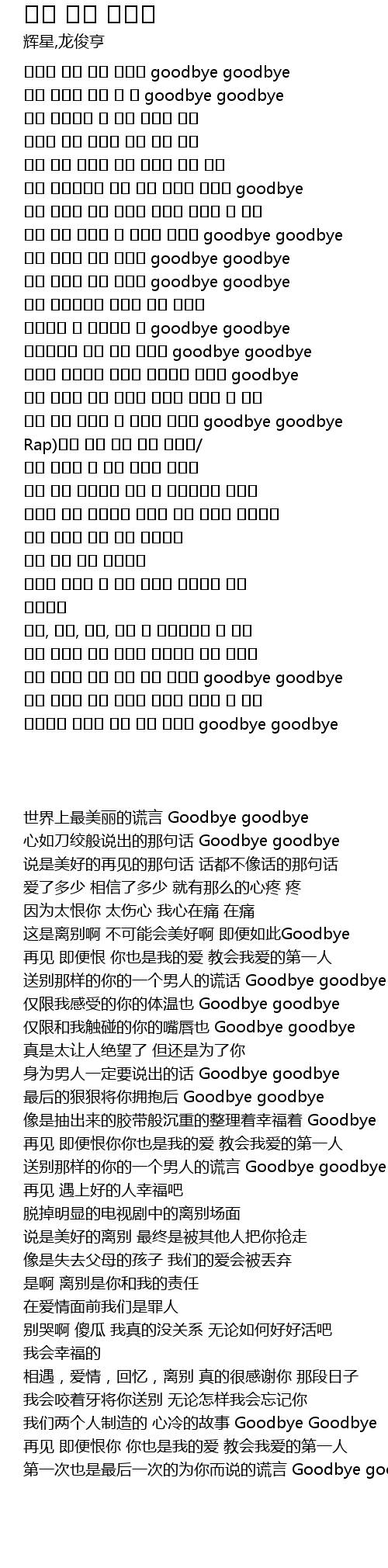 | [00:00.100] | 世界上最美丽的谎言 Goodbye goodbye |