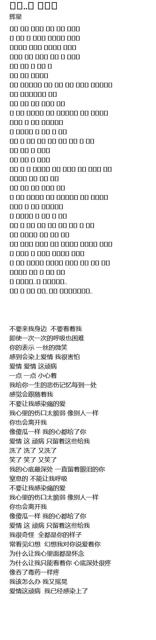 | [03:34.650] | 爱情这顽病 我已经感染上了 |