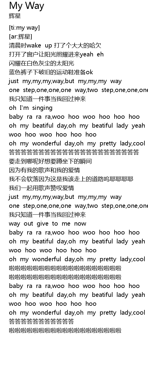 | [00:35.29] | just my, my, my, way, but my, my, my way |