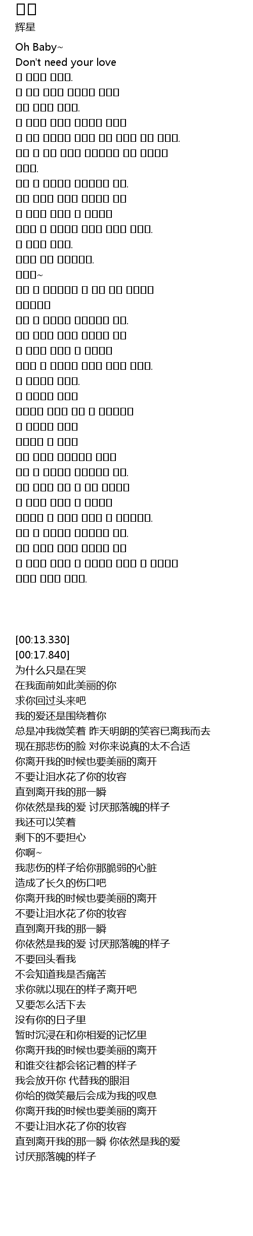 | [00:26.350] | 为什么只是在哭 |