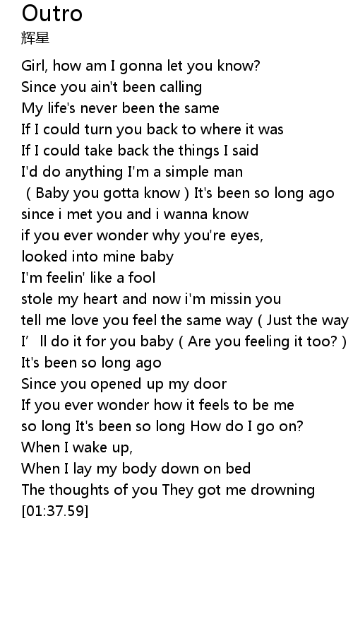 | [00:33.28] | (Baby you gotta know)It's been so long ago |