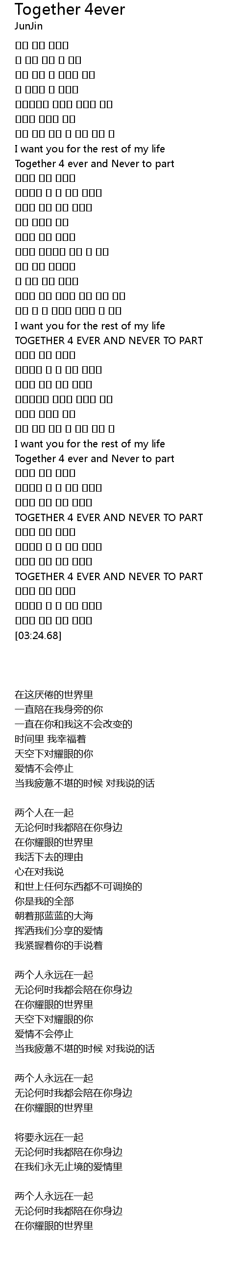 | [03:09.74] | TOGETHER 4 EVER AND NEVER TO PART |