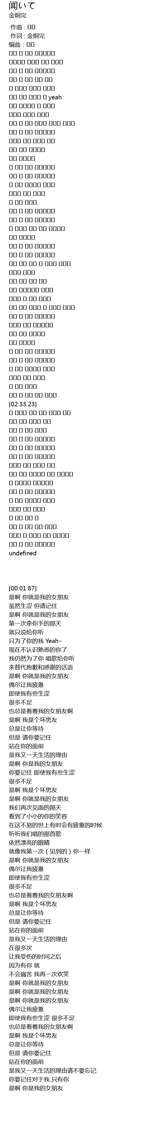 | [02:03.00] | 그래 넌 나의 여자친구야 |