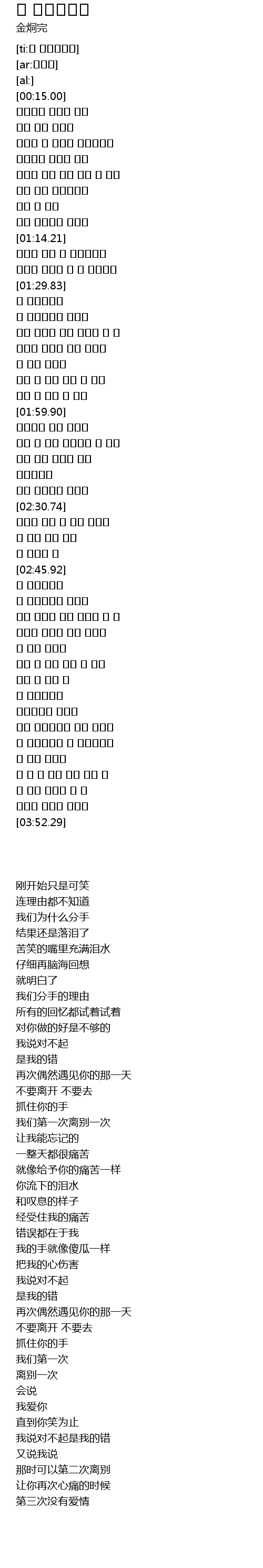| [03:43.00] | 세번째 사랑은 없으니 |