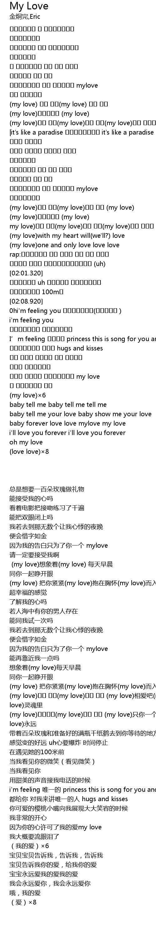 | [01:57.620] | (my love)너하나만(my love)영원 토록 (my love)只你一个(my love)永远 |