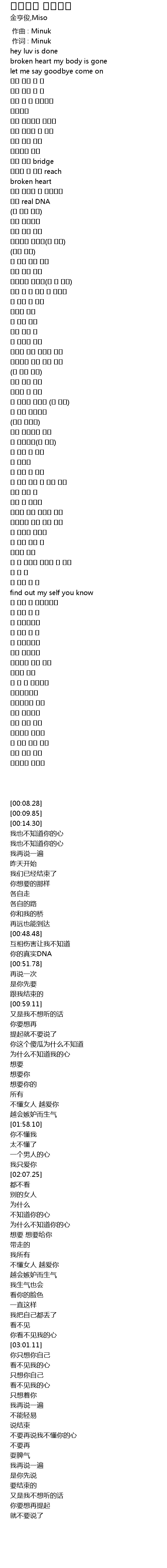 | [02:12.79] | 니 맘을 왜 몰라 |