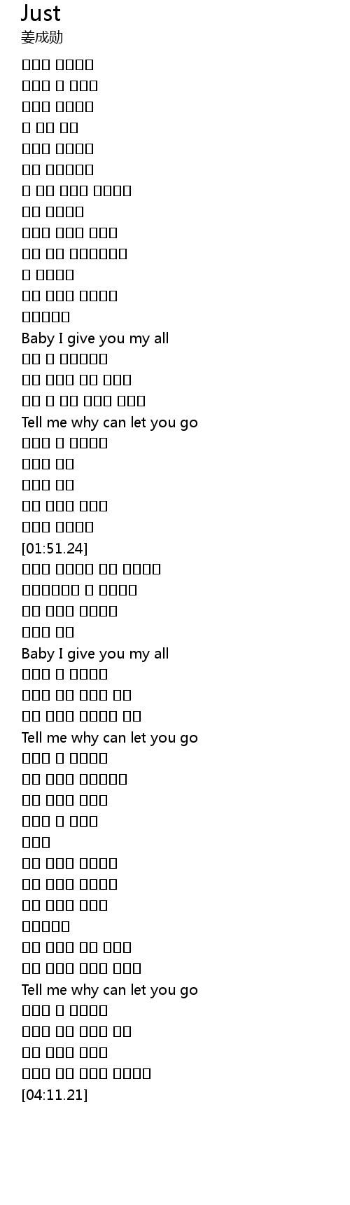 | [02:19.44] | Baby I give you my all |