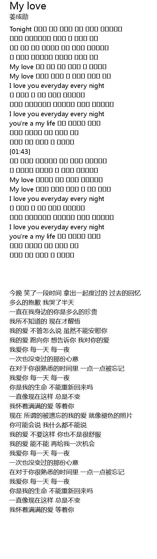 | [00:46] | 我的爱 不管怎么说 虽然不能安慰你 |