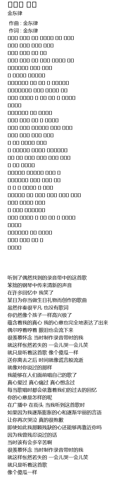 | [00:16.020] | 우연히 찾아낸 낡은 테입속의 노랠 들었어 |