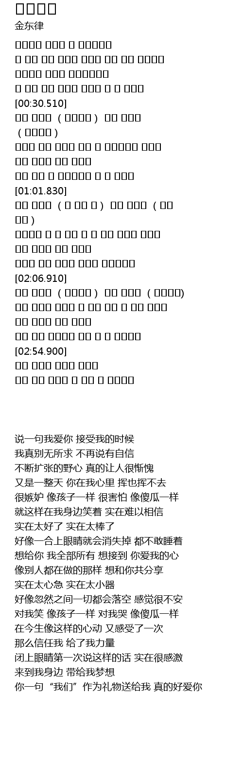 | [03:04.040] | 우리 라는 선물을 준 그대 나 사랑해요 |