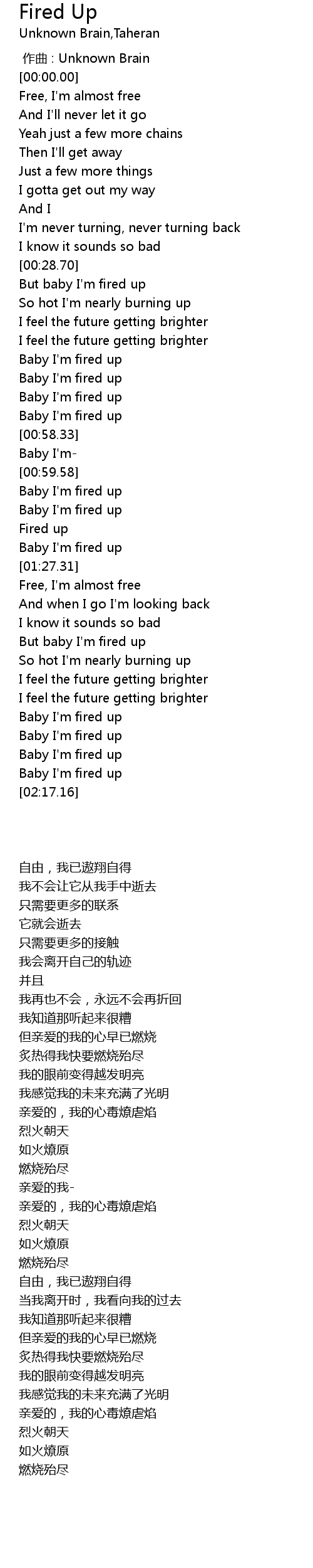| [01:46.17] | But baby I' m fired up |