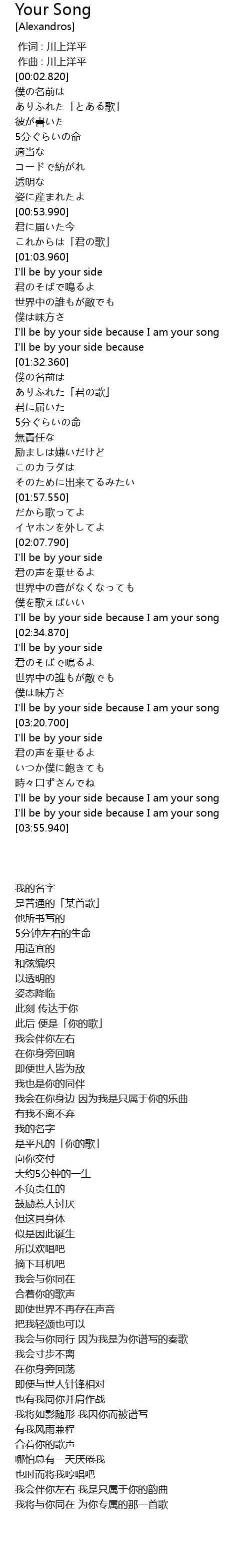 | [03:46.480] | 我将与你同在 为你专属的那一首歌 |
