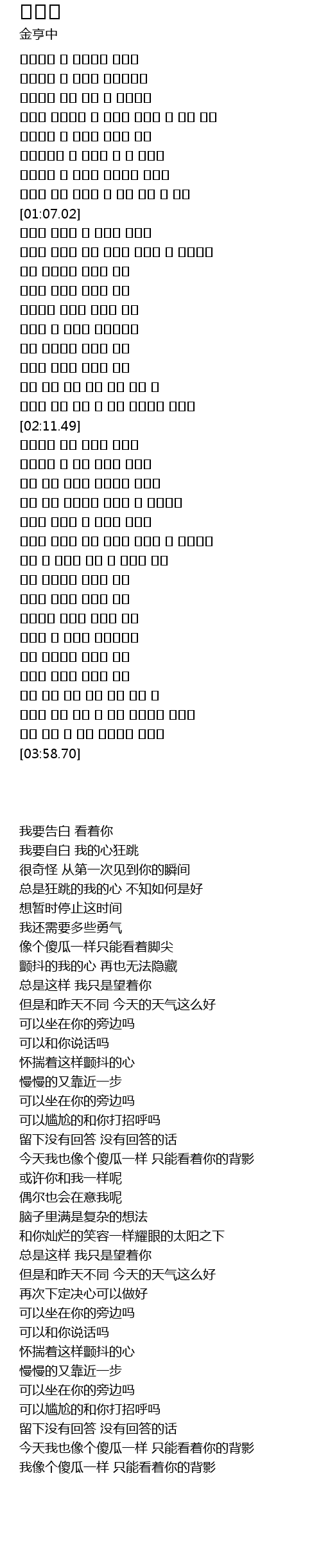 | [00:08.12] | 我要告白 看着你 |