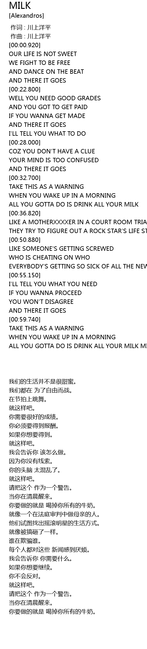 | [01:02.560] | ALL YOU GOTTA DO IS DRINK ALL YOUR MILK MILK |