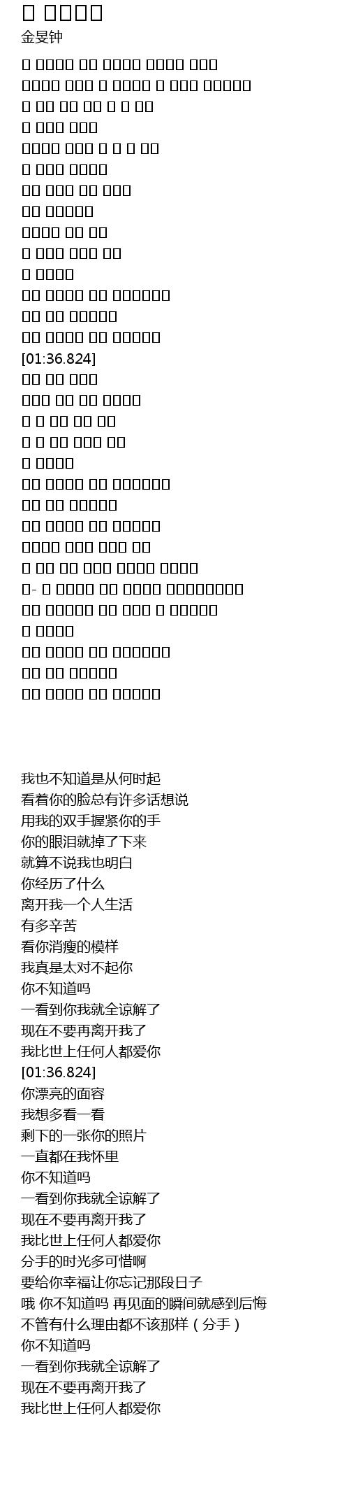 | [01:23.876] | 이젠 나를 떠나가지마 |
