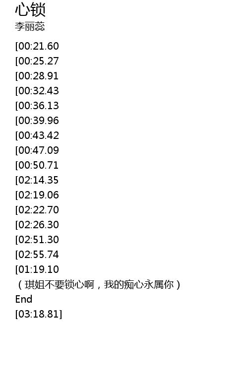 | [01:21.23] | (琪姐不要锁心啊,我的痴心永属你) |