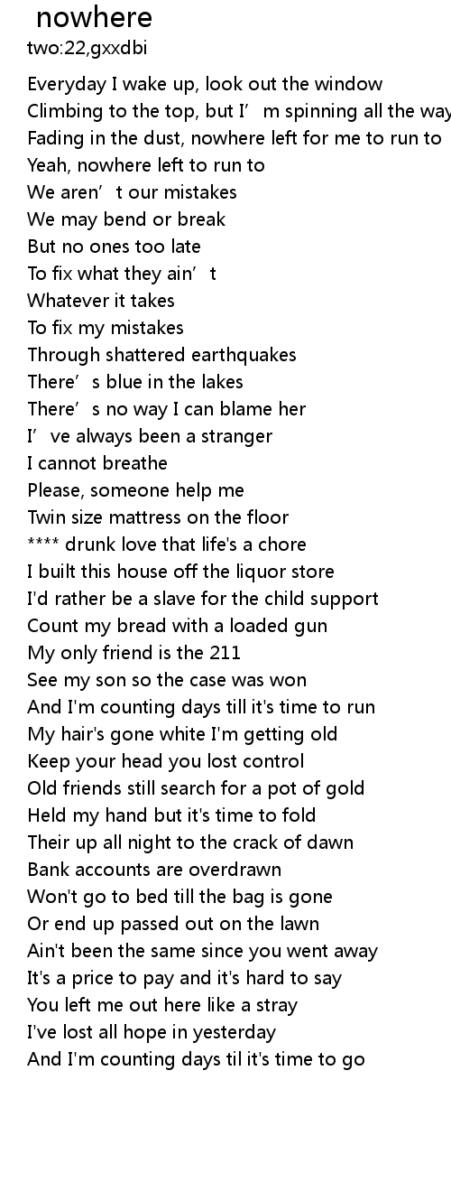 | [00:34.31] | Yeah, nowhere left to run to |