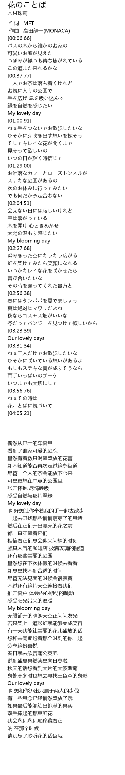 | [00:58.30] | My lovely day |