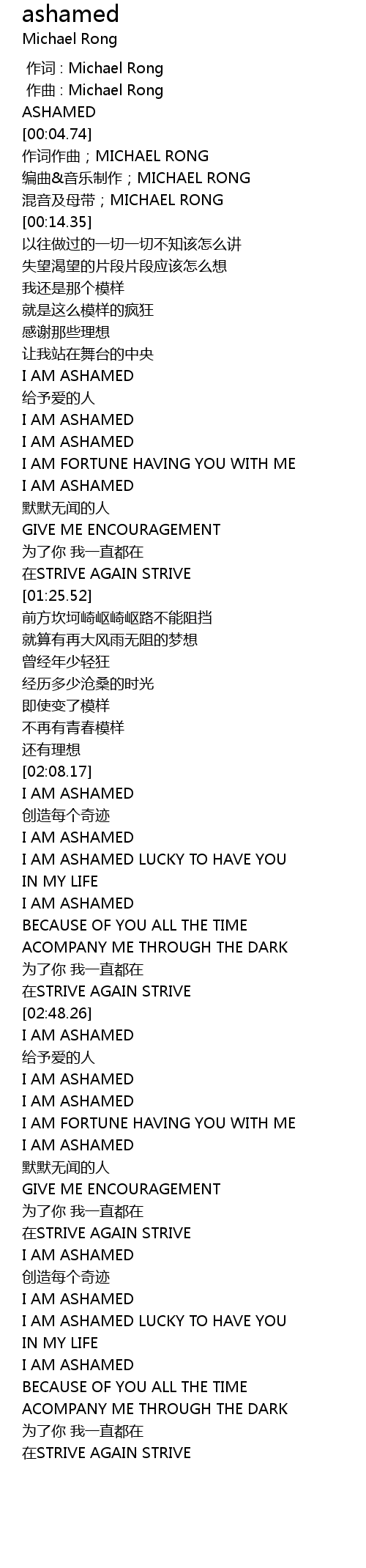 | [00:08.14] | 作词作曲;MICHAEL RONG |